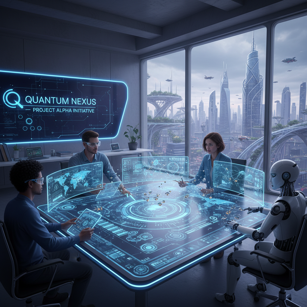 Nowoczesne biuro korzystające z zaawansowanego systemu AI do zarządzania projektami
