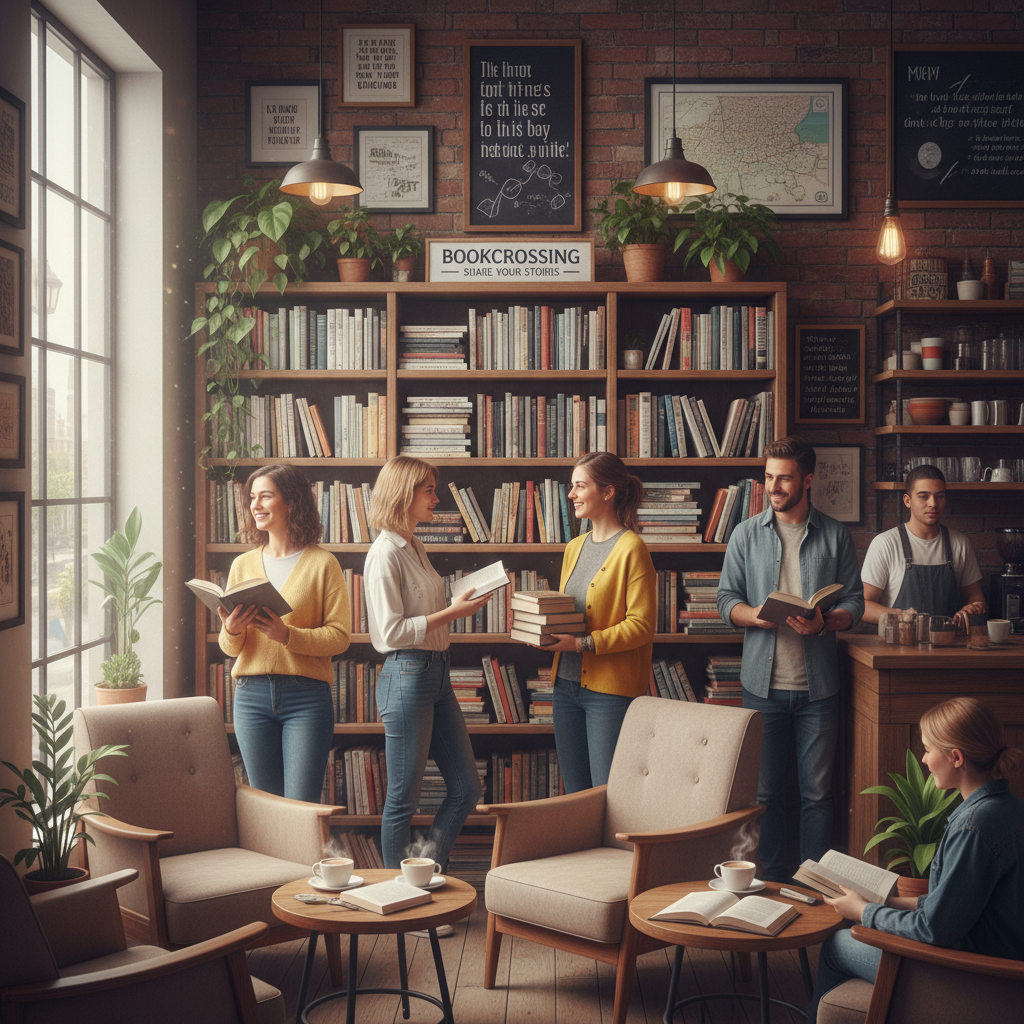 - Kawiarnie z książkami: Miejsca, gdzie można poczytać przy kawie i wymienić się lekturami (np. kawiarnie bookcrossingowe).