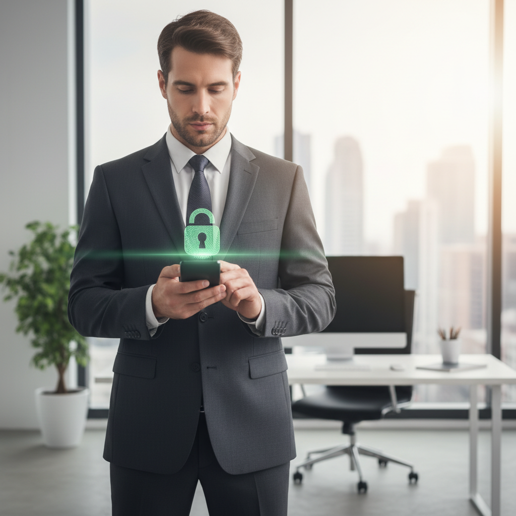 Zdjęcie przedstawia użytkownika korzystającego z aplikacji chroniącej prywatność na smartfonie, symbolizując nową erę ochrony danych osobowych.